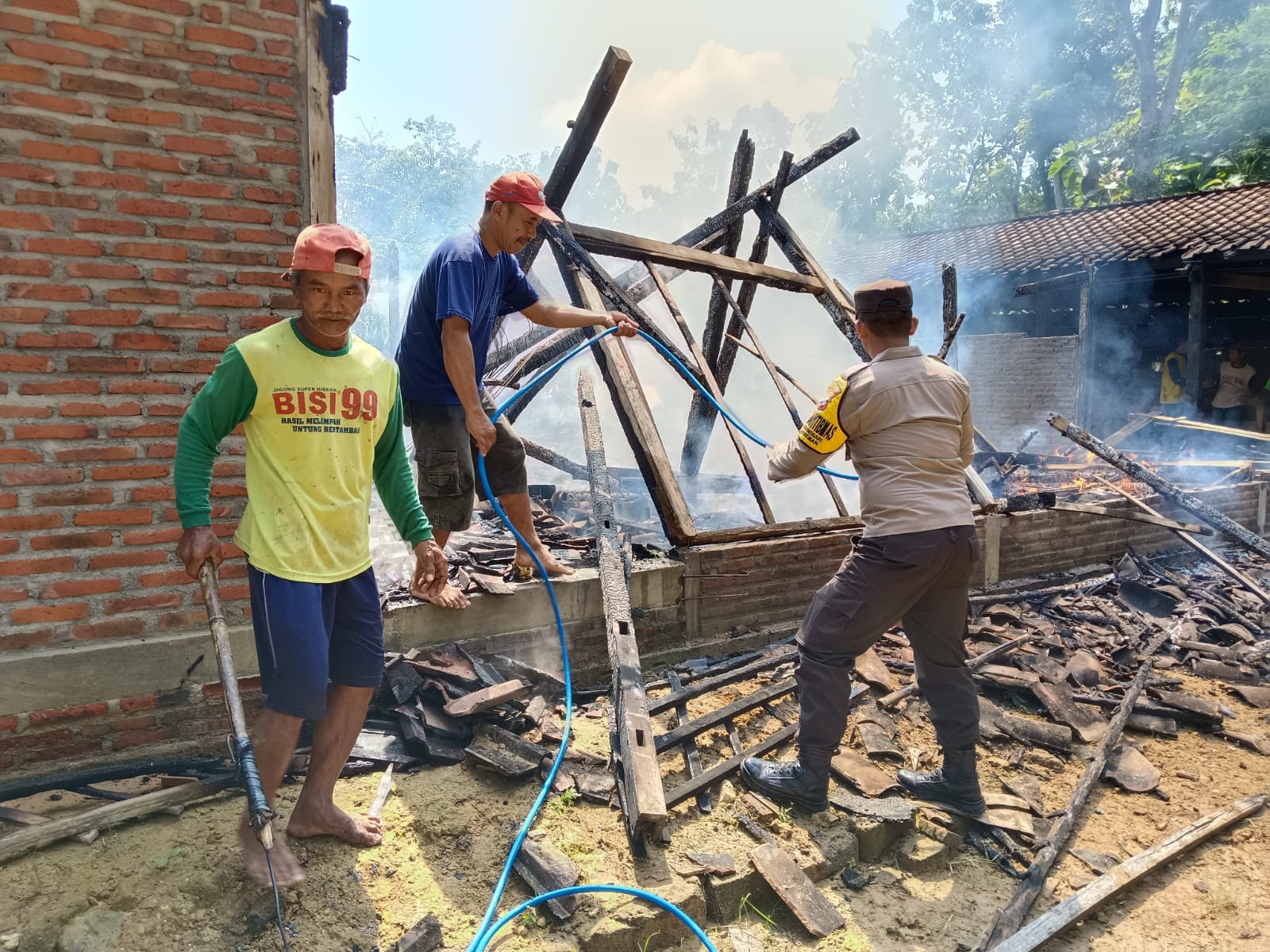 Anggota Polsubsektor Kasreman Polres Ngawi Polda Jatim bersama TNI dan warga sekitar dengan cepat merespons kebakaran yang menimpa sebuah rumah, sehingga kerugian dapat diminimalisir.