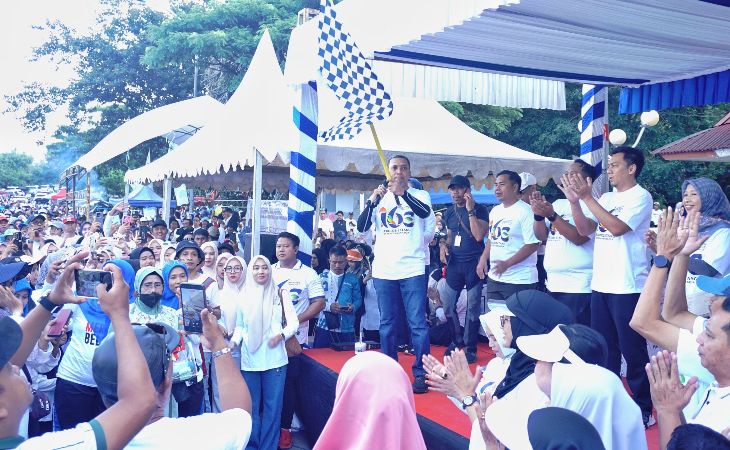 Jeneponto — Pilarbangsa.co.id. Ribuan masyarakat Kabupaten Jeneponto memadati kawasan Taman Turatea untuk mengikuti kegiatan Jalan Santai Bahagia (JSB) dalam rangka memeriahkan Hari Jadi Kabupaten Jeneponto ke-163, Minggu (26/4/2026)