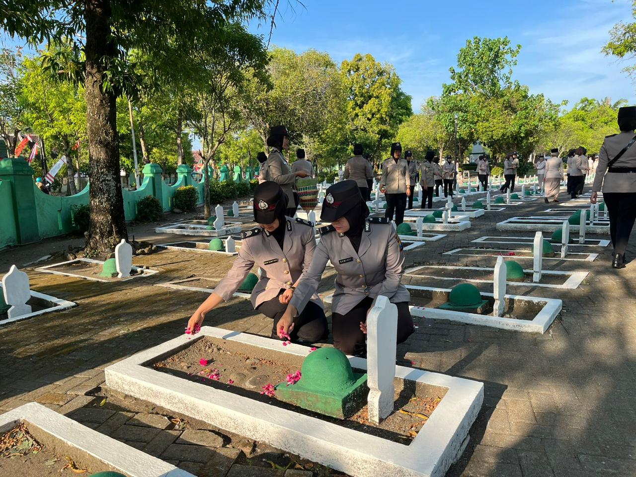 Kali ini, dalam rangka memperingati Hari Jadi ke-77 Polisi Wanita (Polwan) Republik Indonesia Tahun 2025, Polwan Polres Ngawi bersama ASN wanita melaksanakan kegiatan Ziarah dan Tabur Bunga di Taman Makam Pahlawan (TMP) Dr. Radjiman Wedyodiningrat Jl. Diponegoro, Ngawi