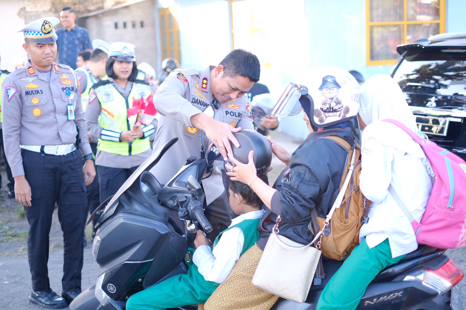 AKBP Danang berharap, dengan adanya kegiatan ini masyarakat bisa semakin paham tentang pentingnya keamanan dalam berlalu lintas, salah satunya bagi pengendara sepeda motor wajib memakai helm. (HUMAS)