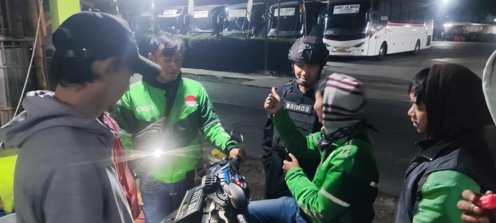 Anggota Piket Mako Kompi 1 Batalyon D Pelopor Satbrimob Polda Jabar dpp Bripda Iqbal Abdul Latip melaksanakan kegiatan Patroli Sambang Harkmatibmas malam, anggota mendatangi beberapa pengemudi Ojek Online dan berdialog pesan Kamtibmas agar tetap meningkatkan kewaspadaan saat saat bekerja mengingat mereka merupakan salah satu sasaran empuk bagi para pelaku C3 (Curat, Curas dan Curanmor).