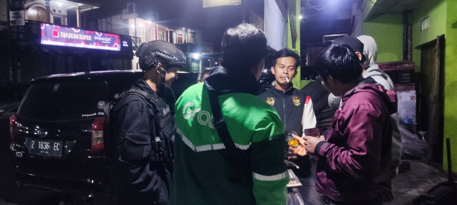 Anggota Piket Mako Kompi 1 Batalyon D Pelopor Satbrimob Polda Jabar dpp Bripda Iqbal Abdul Latip melaksanakan kegiatan Patroli Sambang Harkmatibmas malam, anggota mendatangi beberapa pengemudi Ojek Online dan berdialog pesan Kamtibmas agar tetap meningkatkan kewaspadaan saat saat bekerja mengingat mereka merupakan salah satu sasaran empuk bagi para pelaku C3 (Curat, Curas dan Curanmor).