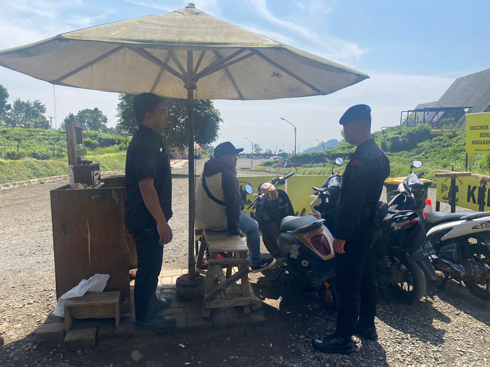 Anggota Kompi 2 Batalyon B Pelopor Satbrimob Polda Briptu Faras melaksanakan patroli serta koordinasi kepada pegawai wisata di wilayah lembang untuk menjaga keamanan tempat wisata tersebut serta keamanan dari wisatawan itu sendiri