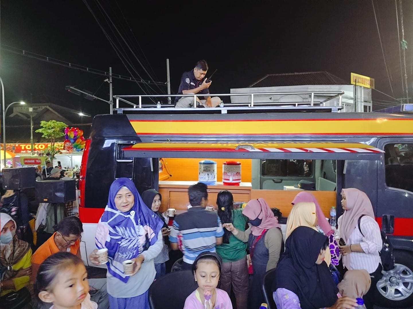 > “Kami sediakan makanan dan minuman dalam giat Pojok Kamtibmas untuk masyarakat. Silakan mengambil secara gratis. Kami sediakan juga musik dan karaoke untuk masyarakat yang hadir,” ujar Kapolres Ngawi.
