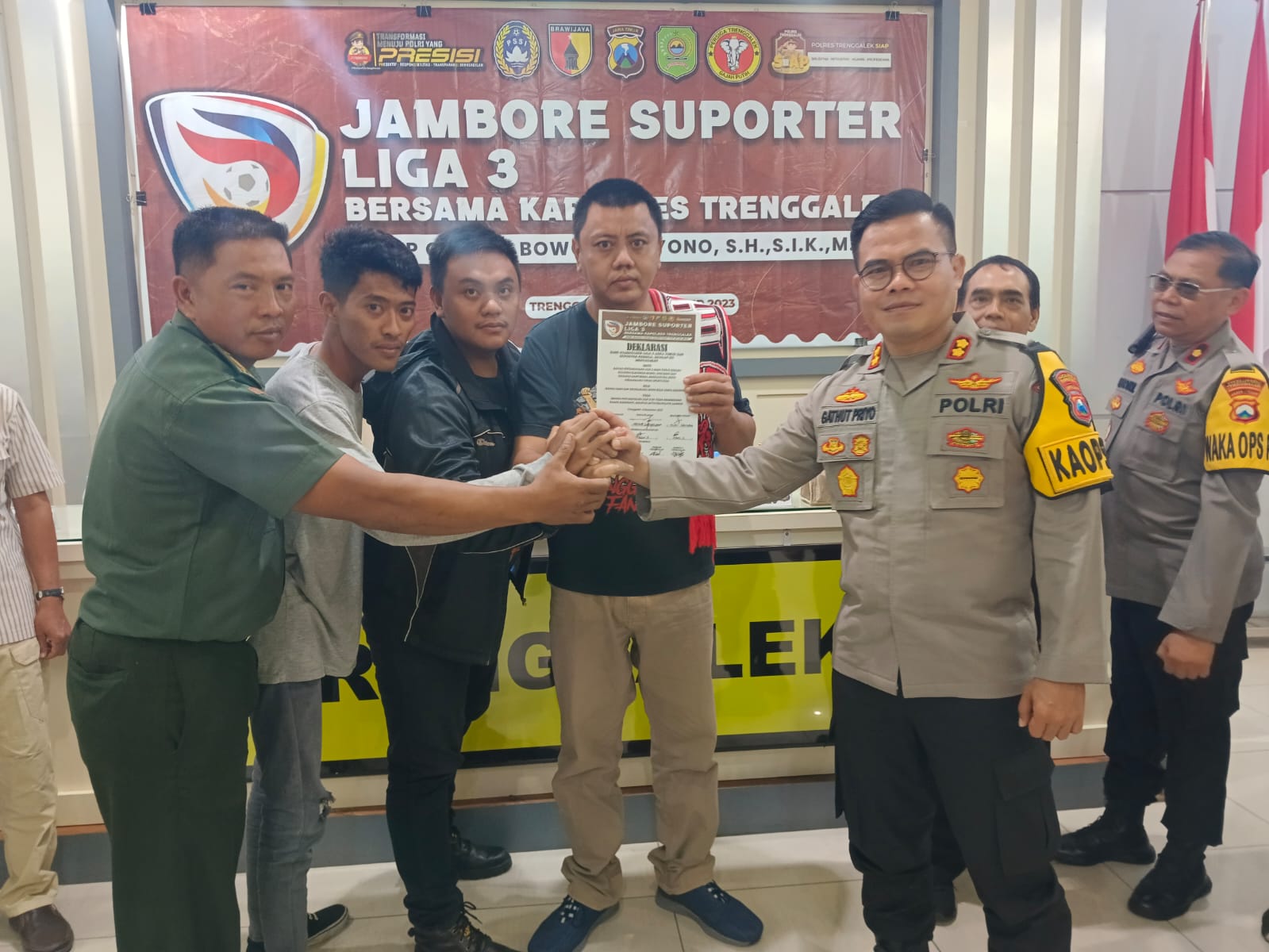 Kepolisian Resort Trenggalek menggelar Jambore Suporter Liga 3. Acara yang diselenggarakan di Rupatama Mapolres Trenggalek ini diikuti oleh sejumlah stakeholder terkait, panitia pelaksana hingga perwakilan suporter bola Trenggalek baik Galak mania maupun galak ultras. Senin, (4/12).