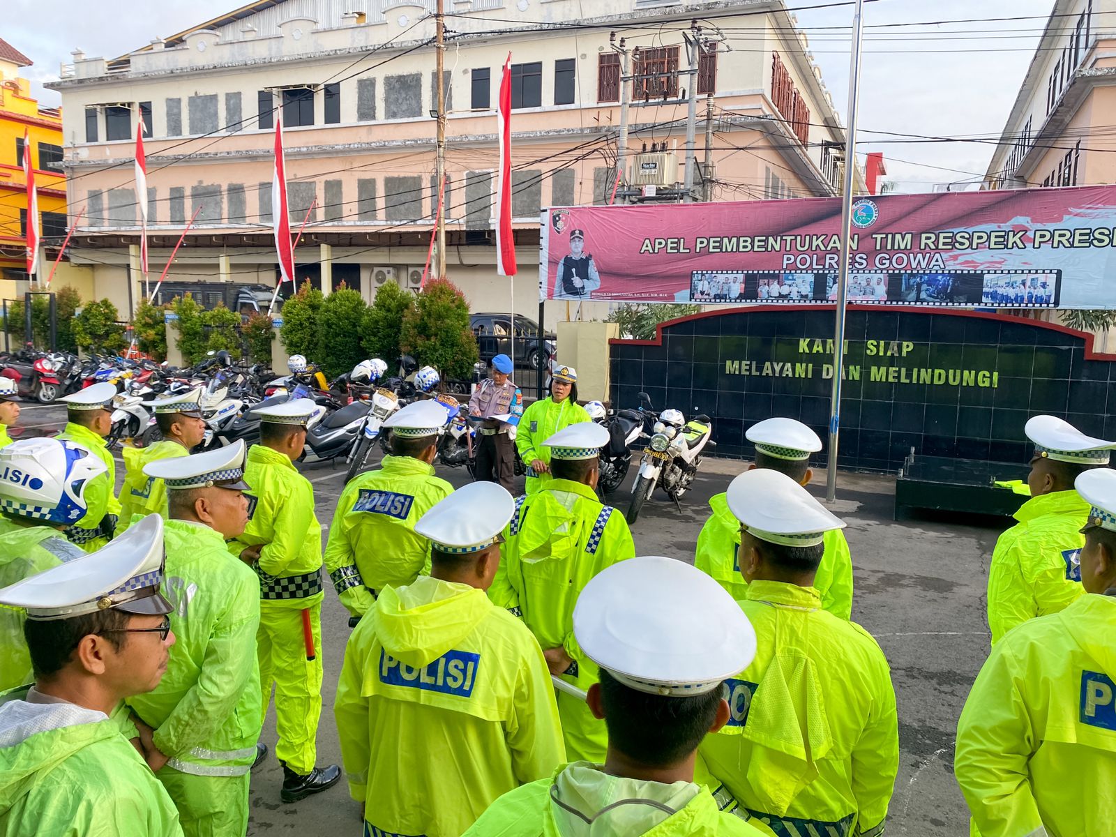 Sebagai wujud kesiapan dalam bertugas, Personil Sat Lantas Polres Gowa melaksanakan apel menggunakan jas hujan, pada Senin (4/12) pagi ini di Lapangan Kantor Polres Gowa.