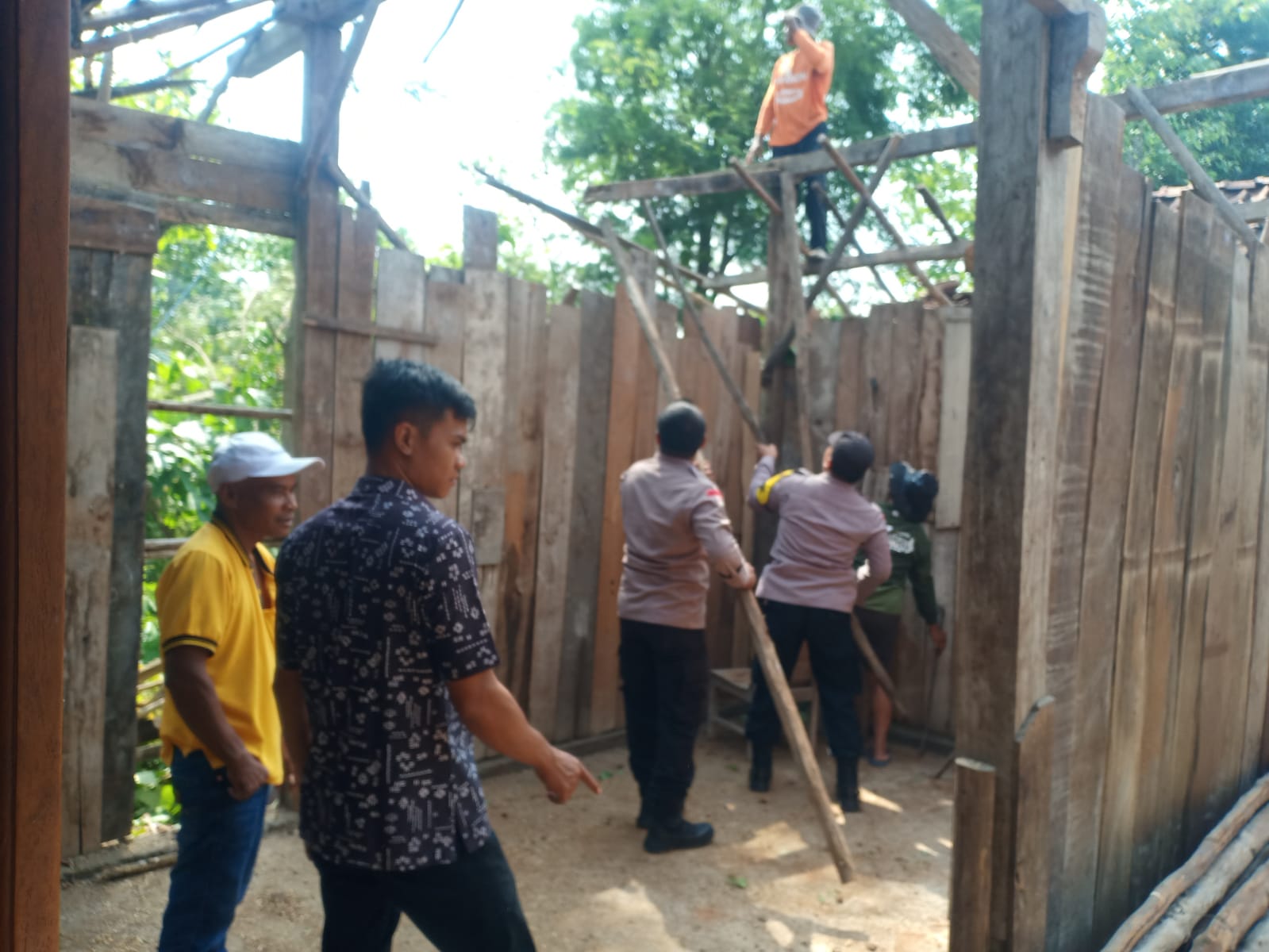 “Bantuan ini tidak banyak, tapi mudah-mudahan berguna bagi warga yang mengalami musibah,” ujar Kapolsek Karanganyar Iptu Supriyanto, S.H., saat gotong royong bersama warga.