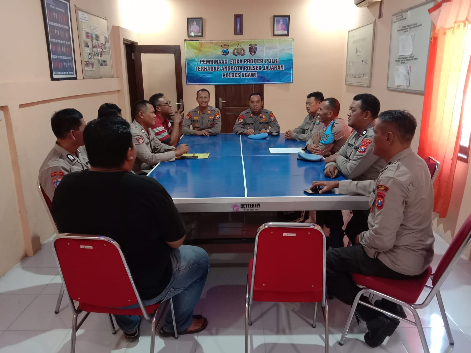 “Setelah diberikan penjelasan terkait etika Polri, kegiatan kami lanjutkan dengan gaktiplin meliputi kerapian sikap tampang, surat data diri, gaya hidup hedonis, dan data pribadi personel Polsek jajaran Polres Ngawi,” ujar Kasi Propam Iptu Suroyo
