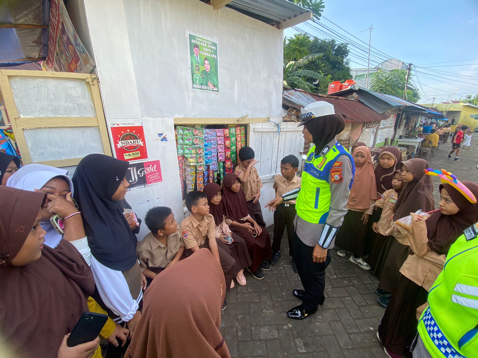 Polwan Polres Gowa dari Satuan Lalu Lintas terus galakkan patroli ke setiap sekolah yang ada di wilayah hukumnya.