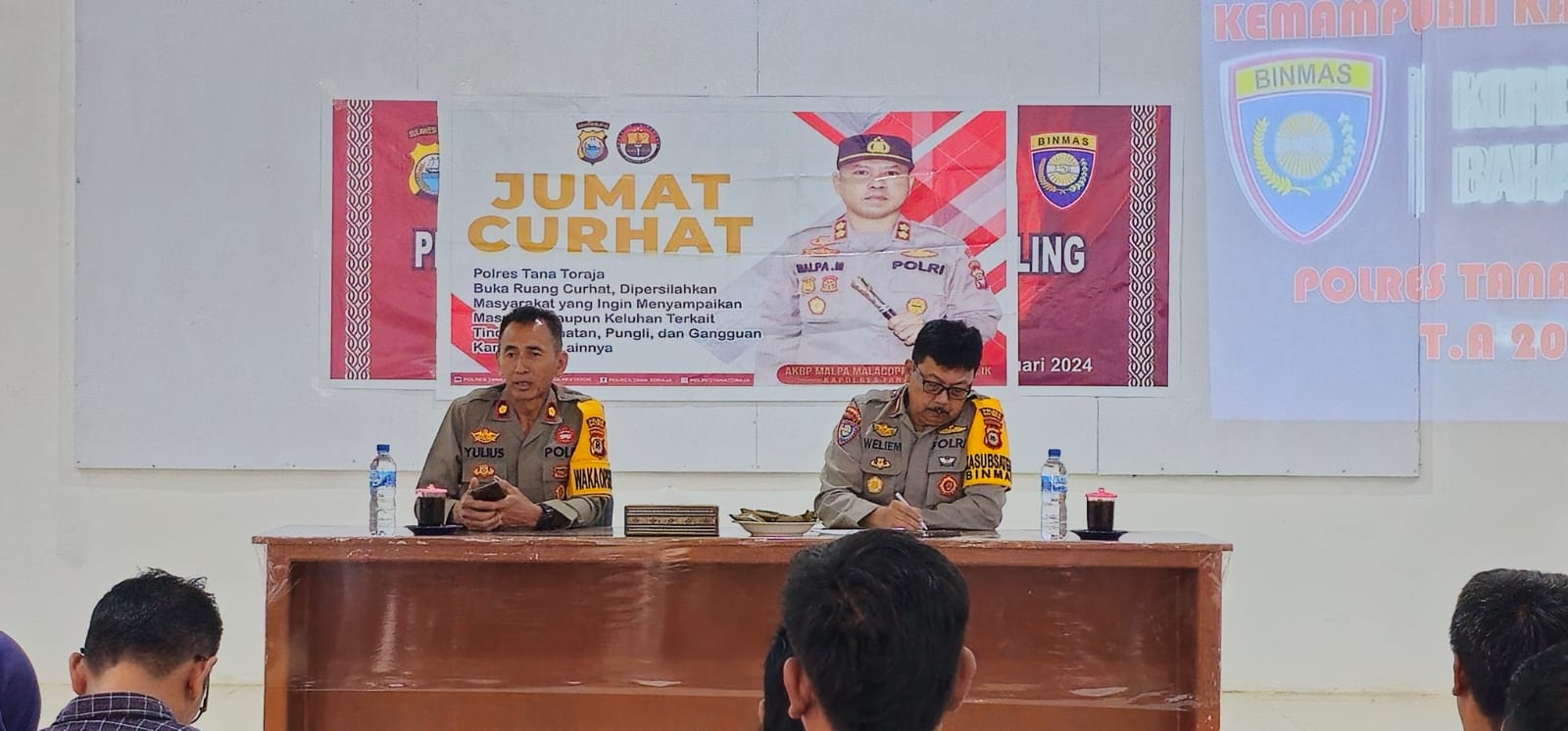 Kegiatan di rangkaikan dengan program Kapolri yaitu jumat curhat yang di ikuti oleh seluruh Kasat Kamling di tiga Kecamatan yaitu Kecamatan Makale, Sangalla dan Kecamatan Mengkendek Kabupaten Tana Toraja