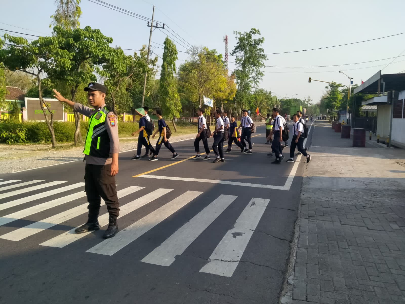 “Kami memastikan mereka dapat berangkat dan pulang dari sekolah dengan selamat tanpa harus merasa khawatir tentang keselamatan di jalan,” kata Sugeng kepada media.