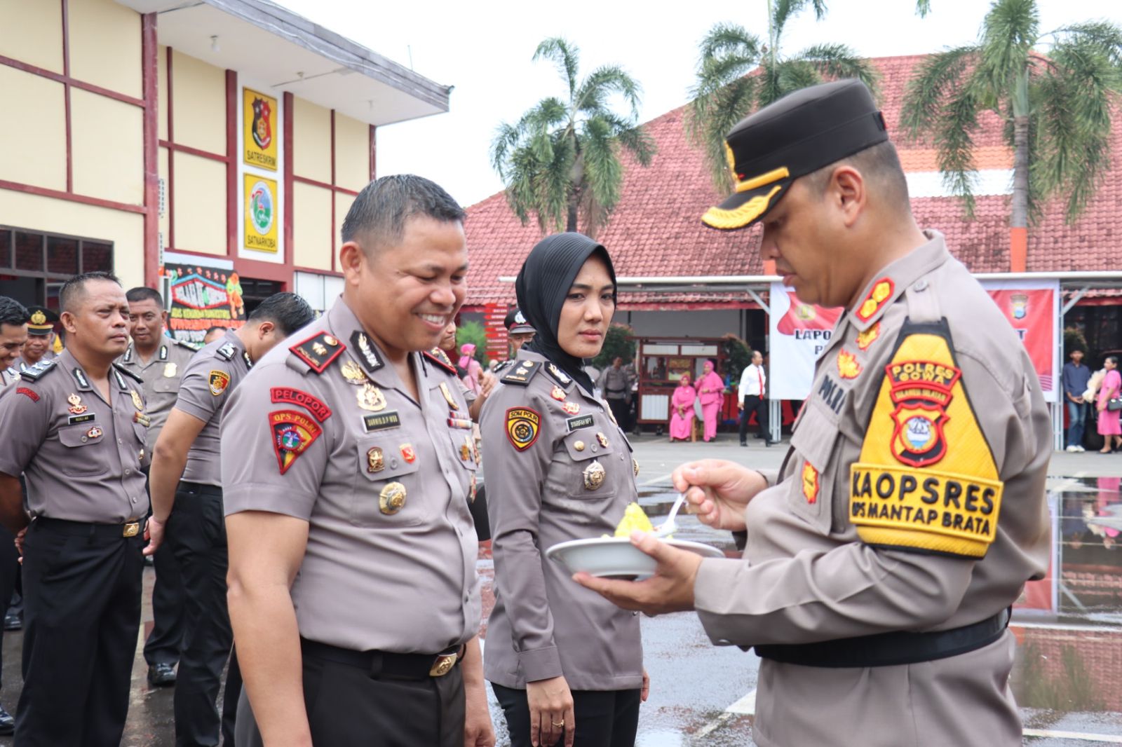 Tidak hanya itu, Kapolres Gowa memberikan potongan nasi tumpeng kepada masing-masing perwakilan personel yang mendapatkan kenaikan pangkat, sehingga menambah kebahagiaan suasana acara.