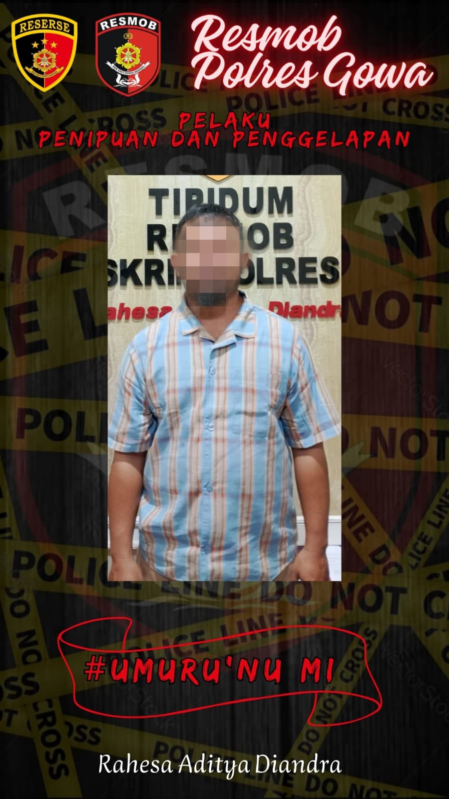 Penangkapan ini dilakukan berdasarkan Laporan Polisi Nomor: LP/B/19/I/2025/SPKT/Res Gowa/Polda Sulsel, tertanggal 31 Januari 2025, serta Surat Perintah Penangkapan Nomor: Sp.Kap/151/IV/Res.1.11/2025/Reskrim.