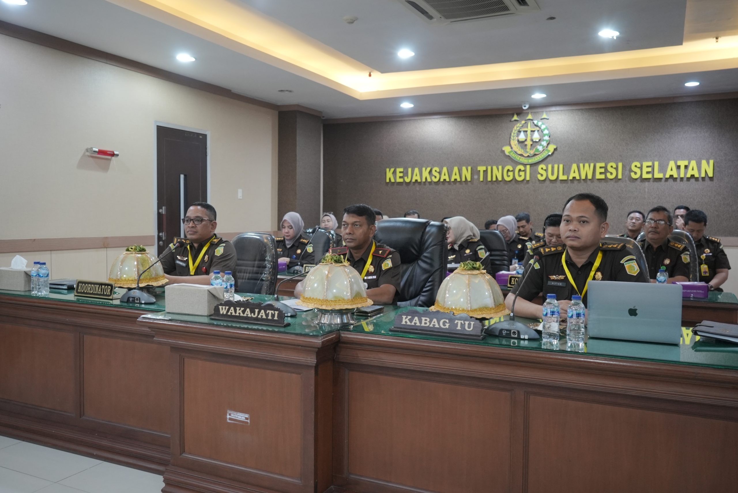 Wakil Kepala Kejaksaan Tinggi Sulawesi Dr. Teuku Rahman, mengikuti pembukaan Rapat Kerja Teknis (Rakernis) Bidang/Badan Kejaksaan RI Tahun 2024 secara daring di aula lantai 2 Kantor Kejaksaan Tinggi Sulawesi Selatan. Rabu (4/9/2024).