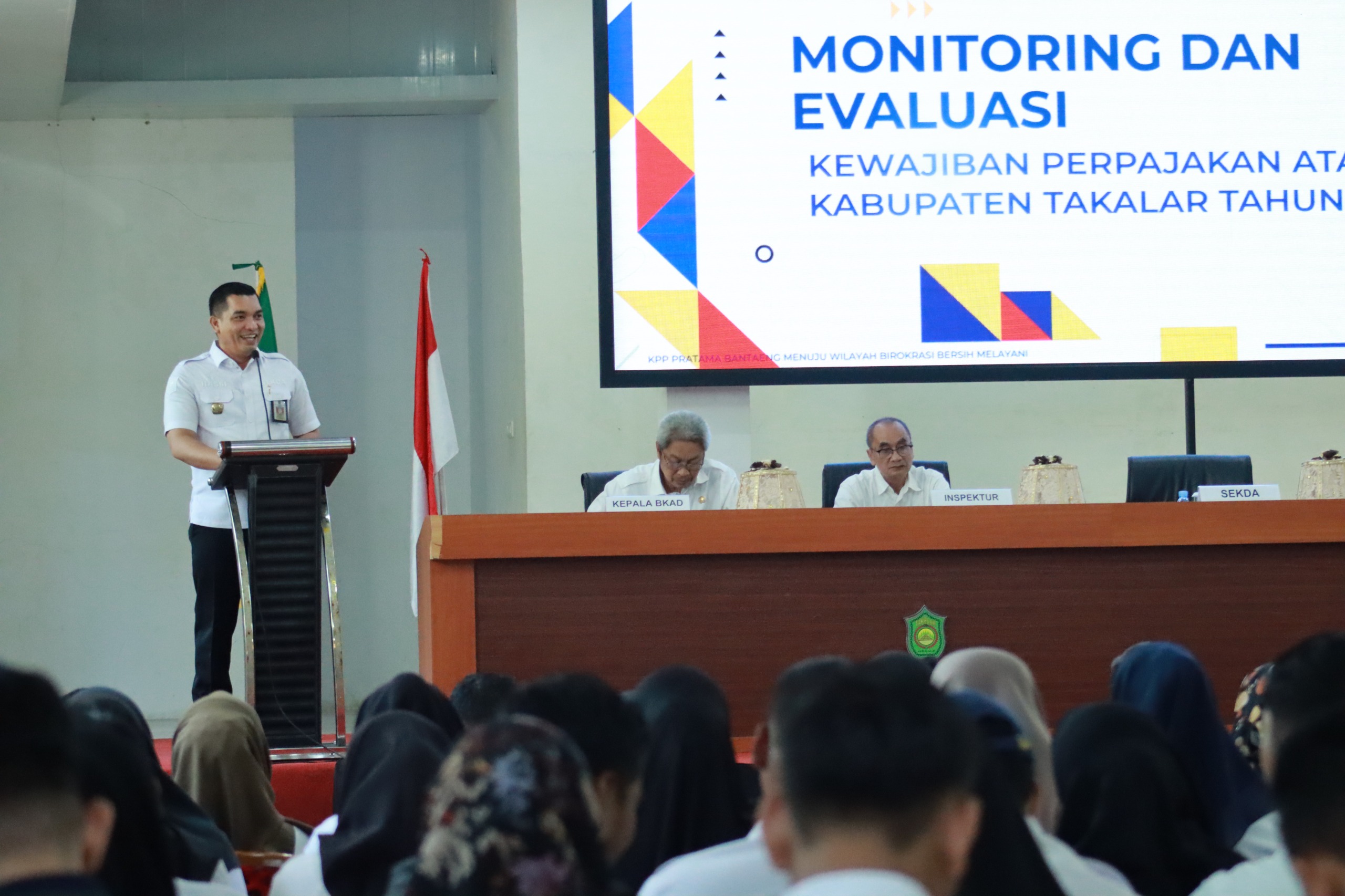 Dalam upaya meningkatkan kesadaran dan kepatuhan terhadap kewajiban perpajakan atas dana desa, Pj Bupati Takalar diwakili Sekretaris Daerah (Sekda) Takalar membuka acara Monitoring dan Evaluasi Kewajiban Perpajakan Atas Dana Desa Kabupaten Takalar Tahun 2024 di Ruang Pola Kantor Bupati Takalar. 31 Juli 2024.