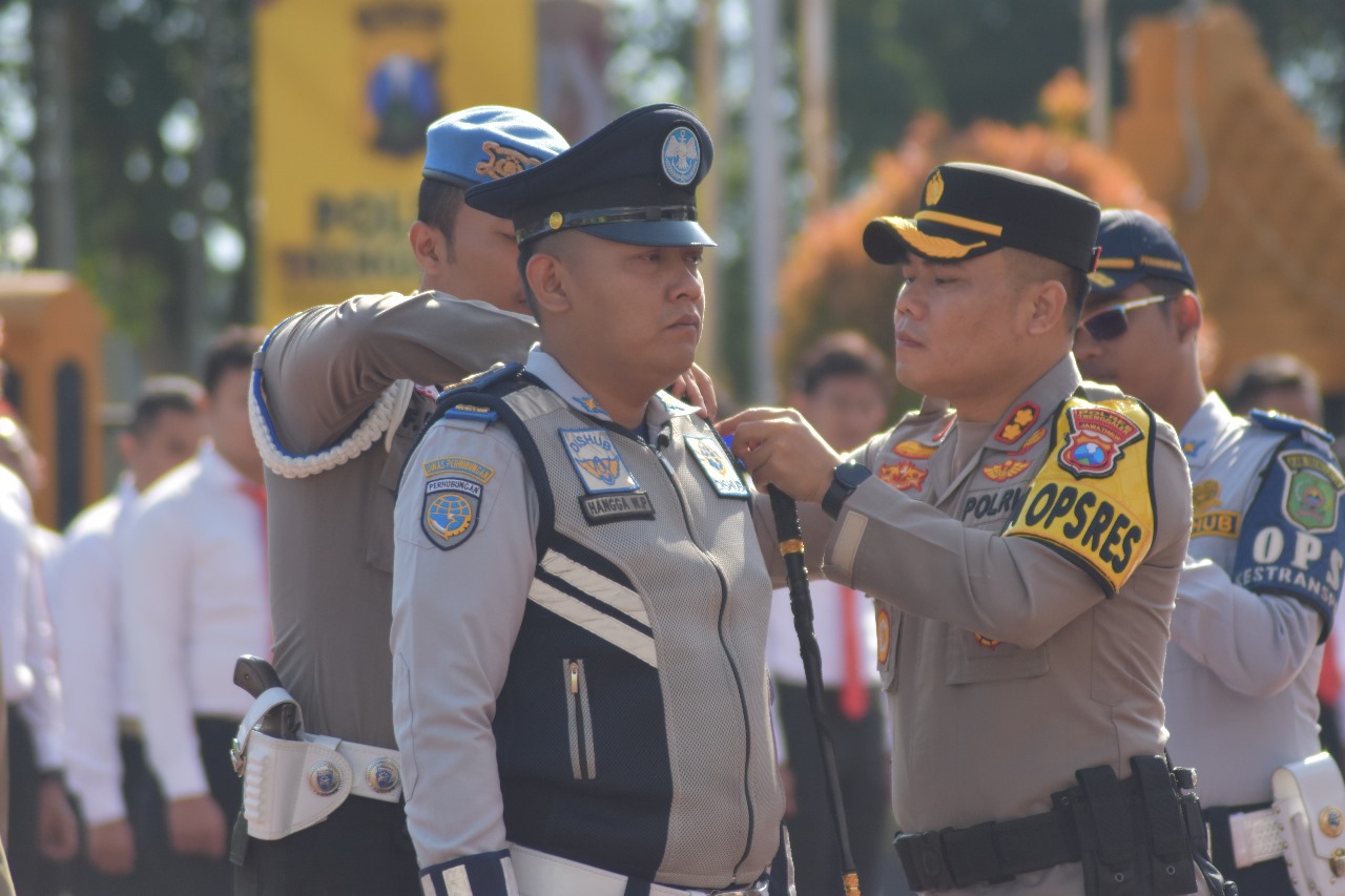 Dalam apel yang mengangkat tema `Kamseltibcarlantas yang Kondusif Menuju Pemilu Damai 2024` tersebut, Kapolres Trenggalek AKBP Gathut Bowo Supriyono, S.H., S.I.K., M.Si. yang bertindak selaku pimpinan apel menyematkan pita kepada sejumlah perwakilan dari masing-masing instansi sebagai tanda dimulainya operasi.